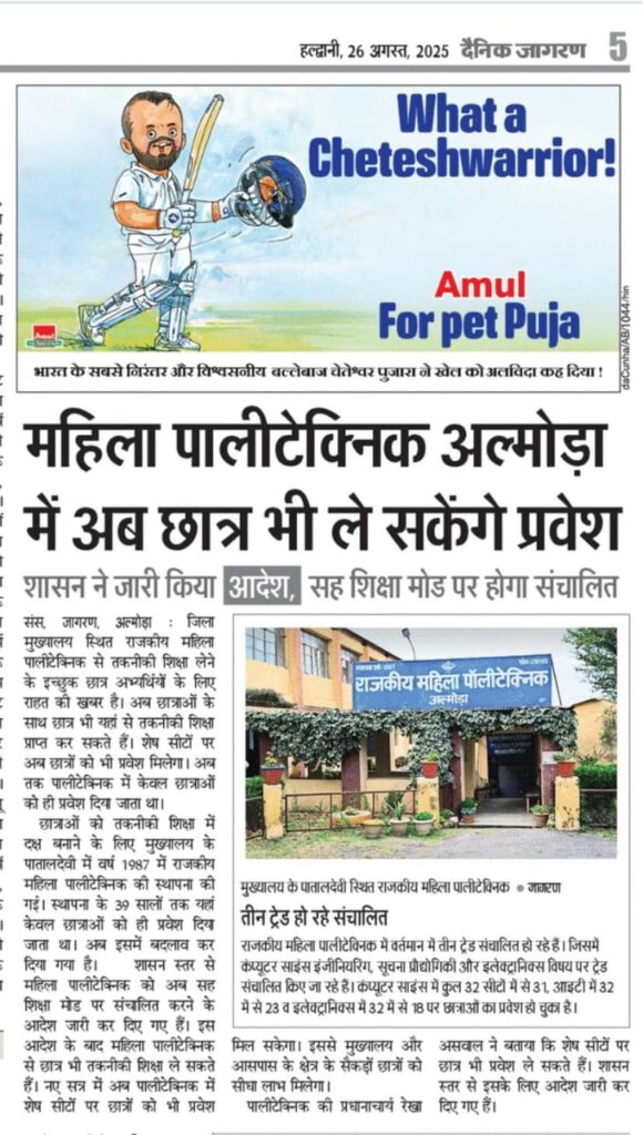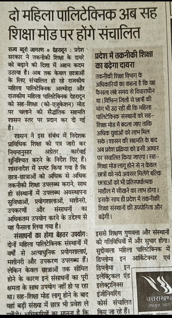 महिला पॉलिटेक्निक अल्मोड़ा में अब छात्र भी ले सकेंगे प्रवेश